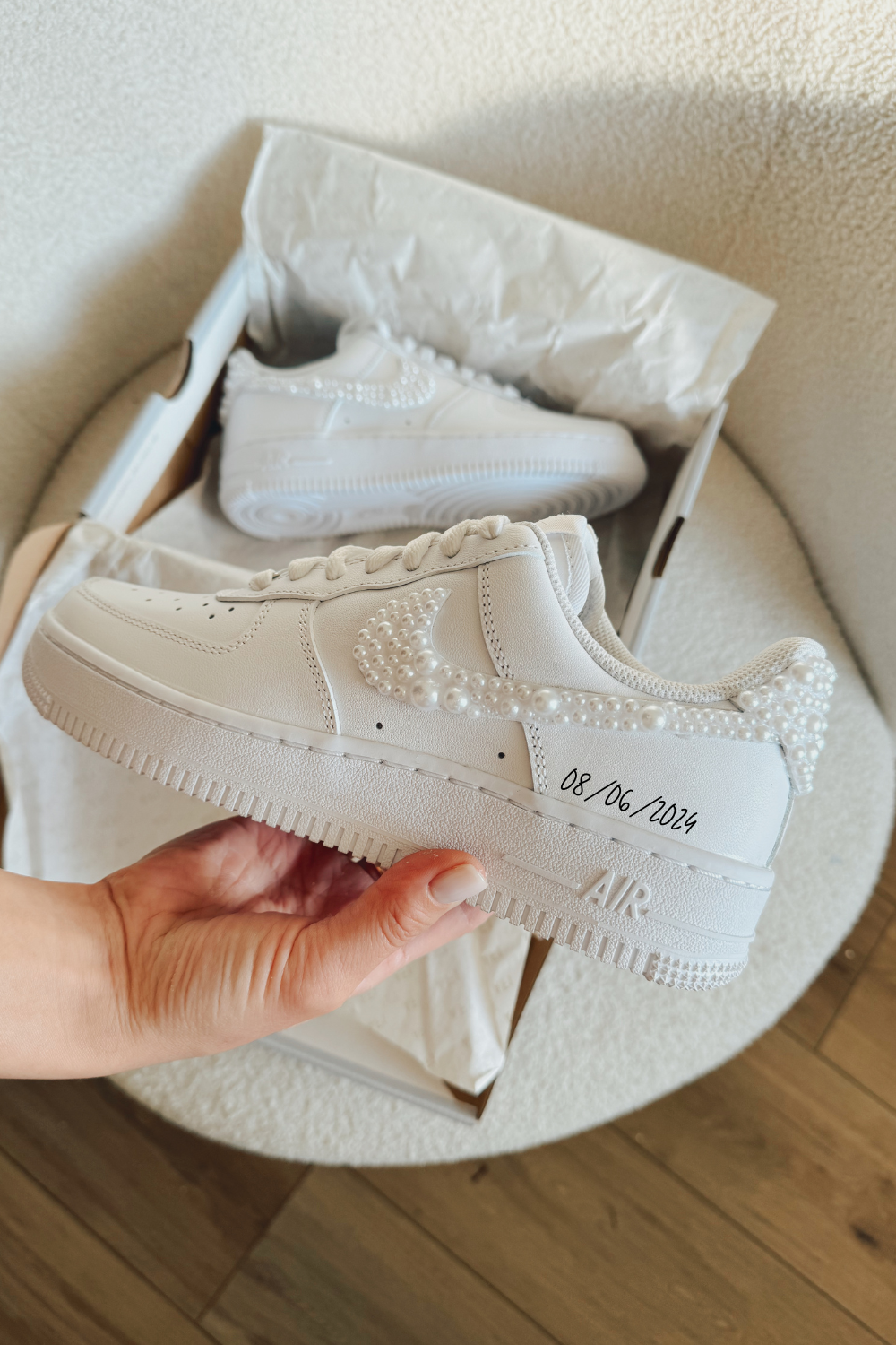 - Pearl swoosh bridal custom made-to-order sneaker.